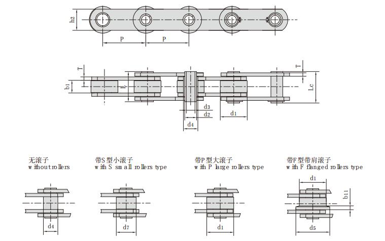 鏈號 節距 滾子尺寸 套筒直徑 鏈板高度 內節內寬 銷軸直徑 銷軸長度 鏈板厚度 抗拉強度