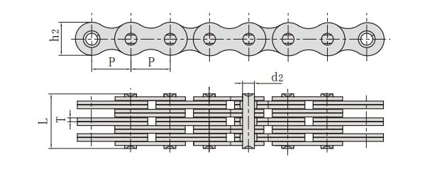 鏈號 節距 鏈板組合 鏈板高度 鏈板厚度 銷軸直徑 銷軸長度 抗拉強度 平均抗拉強度 每米重量
