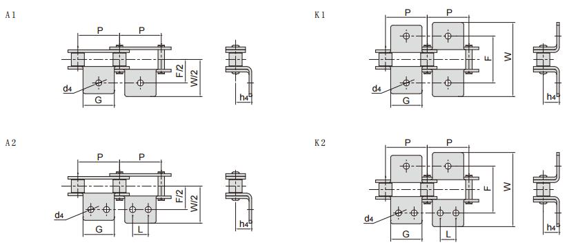 C2162K2,雙節距輸送鏈帶彎板附件,鏈條廠家