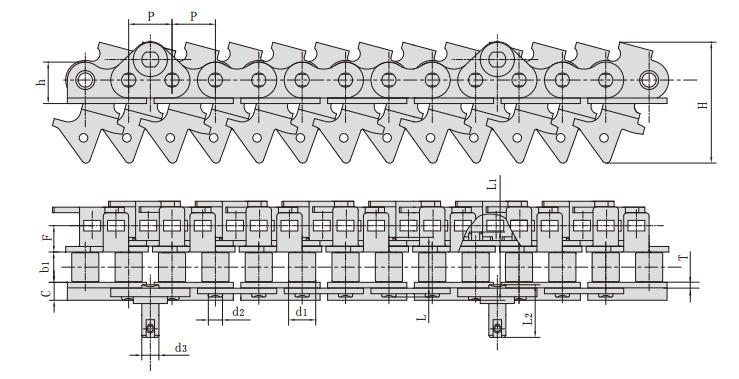 雙節(jié)距帶特殊附件輸送鏈
